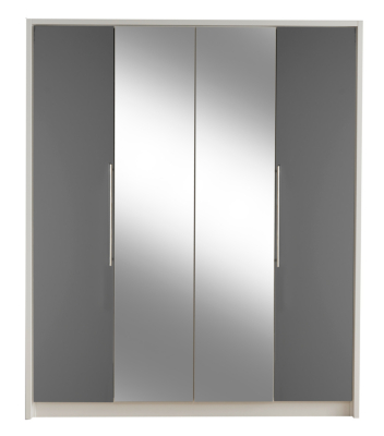 Minsk Grey Gloss Wardrobe with Mirrors 4 Door Wardrobes at